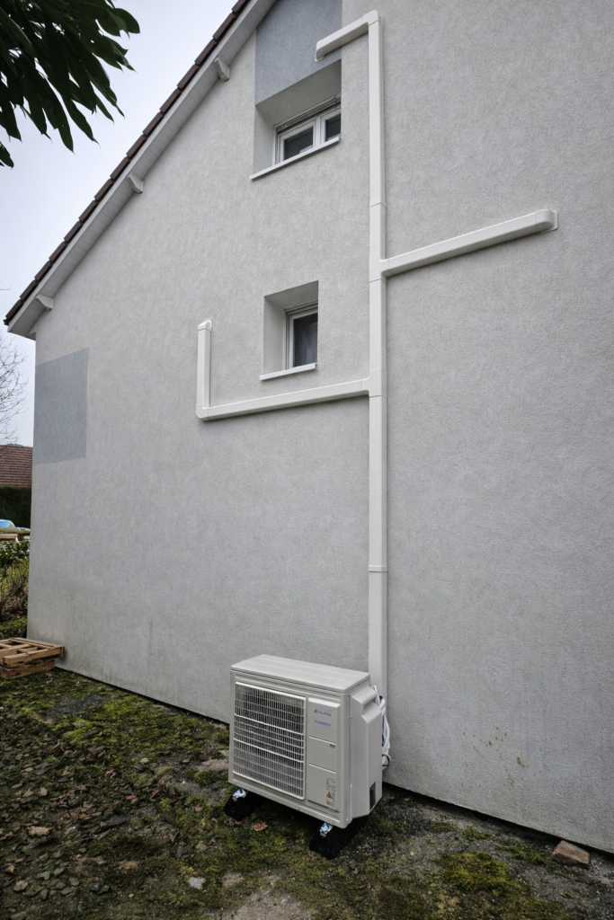 Les groupes extérieurs ont été installés sur des supports adaptés, avec une attention particulière portée à la stabilité, à la ventilation et à la réduction des nuisances sonores, point essentiel en zone résidentielle.