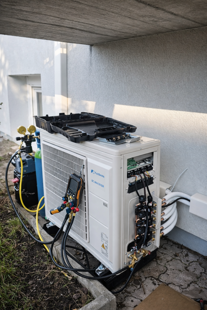 Après l’installation, une mise en service complète a été effectuée : tirage au vide, contrôles d’étanchéité, réglages et tests de fonctionnement. Le client a ensuite été accompagné dans la prise en main du système, avec des explications simples pour une utilisation efficace au quotidien.